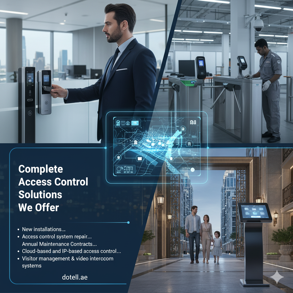 At Dotell, we specialize in the installation and supply of advanced access control systems across Dubai and the UAE—helping businesses, residential communities, and industrial sites enhance their security and streamline access management. Whether you need a biometric door access control system, RFID card entry, smart locks, or a cloud-based access control platform, we offer tailored solutions to match your specific environment and security needs. Our team handles everything from system design and device supply to SIRA-compliant installation, integration with CCTV, and ongoing maintenance through our Access Control AMC services in Dubai. Backed by trusted brands like ZKTeco, HID, and Suprema, our systems offer reliable performance, scalability, and user-friendly control—all with full regulatory compliance and local support.