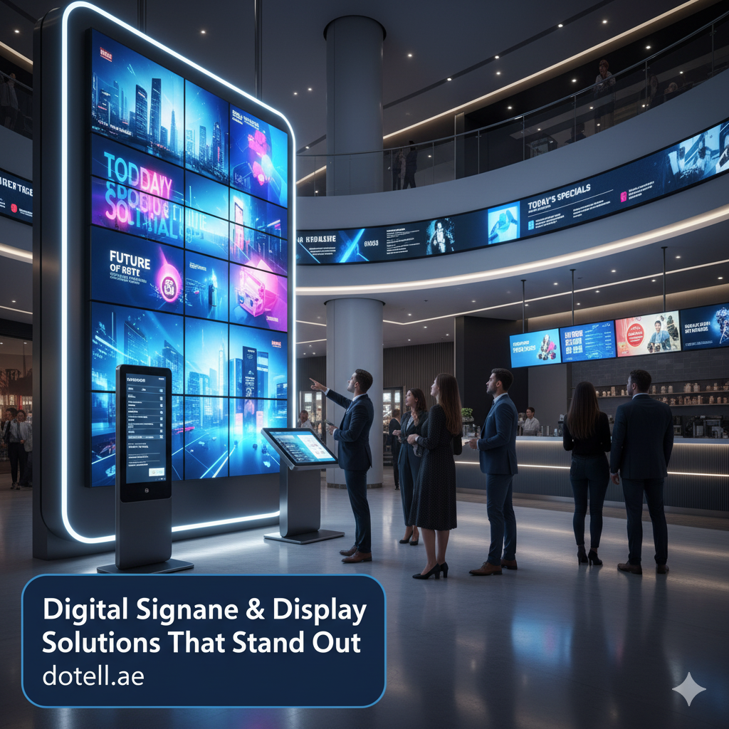 Capture attention and communicate effectively with our dynamic digital signage solutions in the UAE. At DoTell, we provide end-to-end services for LED video walls, interactive displays, and commercial-grade digital screens—perfect for retail stores, hotels, corporate lobbies, and public venues. Whether you’re looking to install a Samsung or LG video wall or need a scalable content management system, our team ensures seamless setup, vivid display quality, and remote content control. From digital menu boards to large-scale video wall installations in Dubai, we help your message shine.